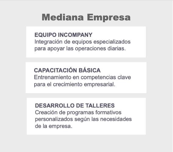 Nuestro enfoque en el desarrollo de competencias asegura que los líderes y colaboradores de las empresas estén preparados para enfrentar los desafíos del entorno empresarial moderno.